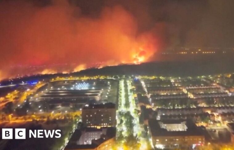 Emergency crews are battling multiple wildfires across Spain and Portugal, as a record-breaking heatwave continues across Europe. Firefighters worked through the night on Monday in an effort to contain a blaze burning in the municipality of Tres Cantos, located 23km north of Madrid. Extreme temperatures in Spain and Portugal are expected to continue until at least Wednesday, officials say, with forecasts reaching up to 44C.