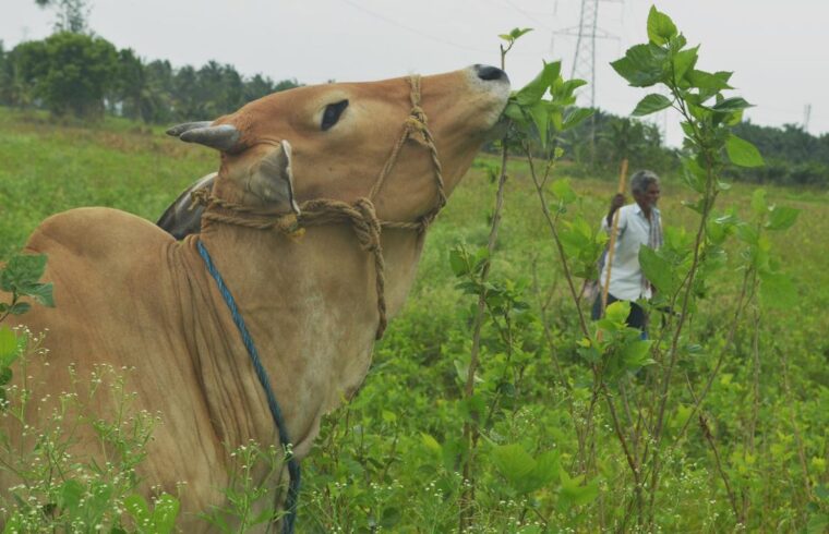 On the outskirts of Chebrolu in Gollaprolu mandal of Kakinada district, vast fields of harvest-ready mulberry plants quivered in the monsoon winds. Amidst their vibrant green, however, herds of cattle greedily munch on the matured crop. They move quickly, clearing rows after rows within short periods.