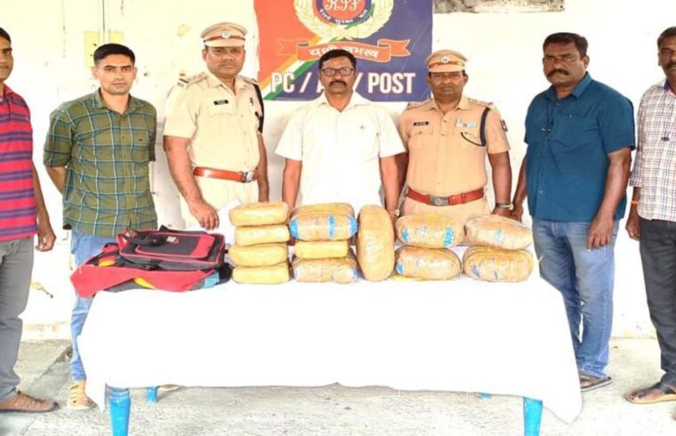 The express train, which was on its way to Chennai, halted at the railway station. The team searched coaches of the express train where they found two abandoned tourist bags in the general compartment of the train. When they opened the bag, they found around 11 packets that contained 26 kgs of ganja.