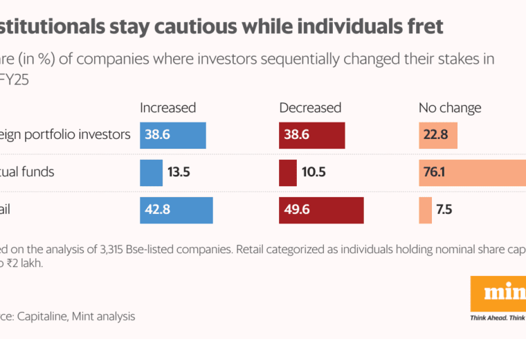 “Retail investors sharply cut exposure in Q4 FY25, reacting to heightened market volatility, macro concerns, and a broad sell-off,” said Harshal Dasani, business head at INVasset PMS, a portfolio management service provider. “Retail investors, more sensitive to short-term swings, reacted to falling portfolios, a slowdown in consumption, liquidity crunch, and persistent FPI selling.”