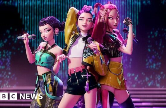 [ad_1] A hugely popular K-pop musical animation has seen songs by its fictional bands top US music charts, beating real-life K-pop groups.KPop Demon Hunters is currently the most streamed movie on Netflix globally, clocking up…