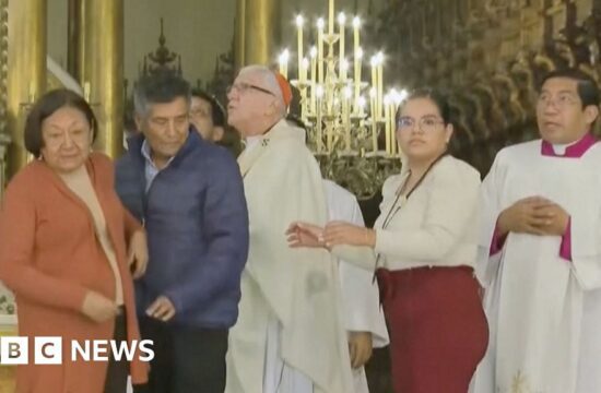 [ad_1] Cameras have captured the moment an 5.6 magnitude earthquake shook Lima, Peru on Sunday morning, causing panic among worshipers at the city's cathedral. The epicentre was recorded 23km off the coast of Callao, according…