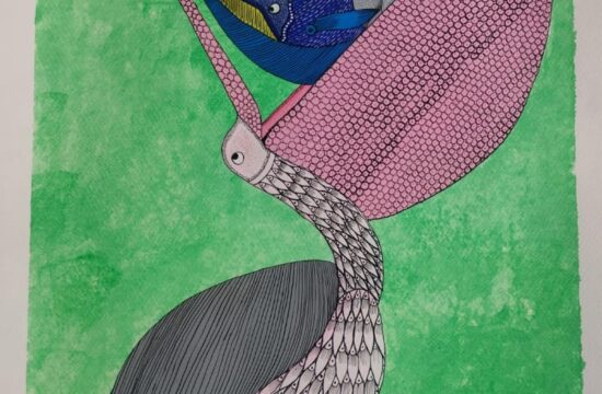 [ad_1] In a playful mix of Gond art and folk surrealism, Sandeep Dhurve’s pelican — its delicate feathers made from fish — opens its exaggerated throat pouch to swallow a large fish and an elephant. White…