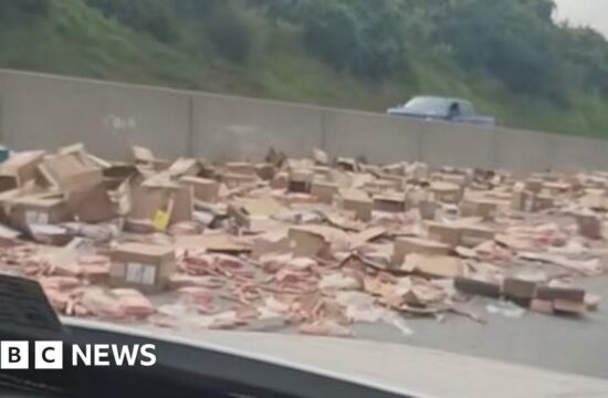 [ad_1] Thousands of hot dogs spilled onto a highway in the US state of Pennsylvania after a lorry scraped another car, briefly bringing traffic on the road to a standstill. Four people required medical attention…