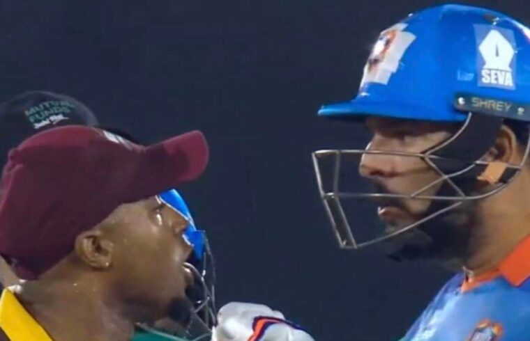 The incident took place in the 13th over of the India Masters innings. While unclear what sparked the altercation, the visuals showed Yuvraj Singh pointing fingers at Tino Best while the West Indies pacer retaliated continuously.